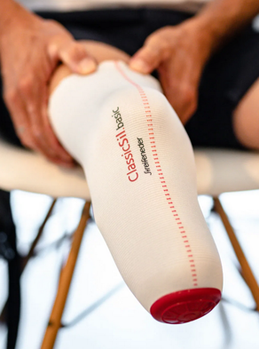 Bei einer Beinprothese sorgt der sogenannte Liner – ein weicher Strumpf zwischen dem Bein und der Prothese – für Komfort und Halt. Er schützt die Haut, verteilt den Druck gleichmäßig und trägt entscheidend dazu bei, dass die Prothese angenehm sitzt.